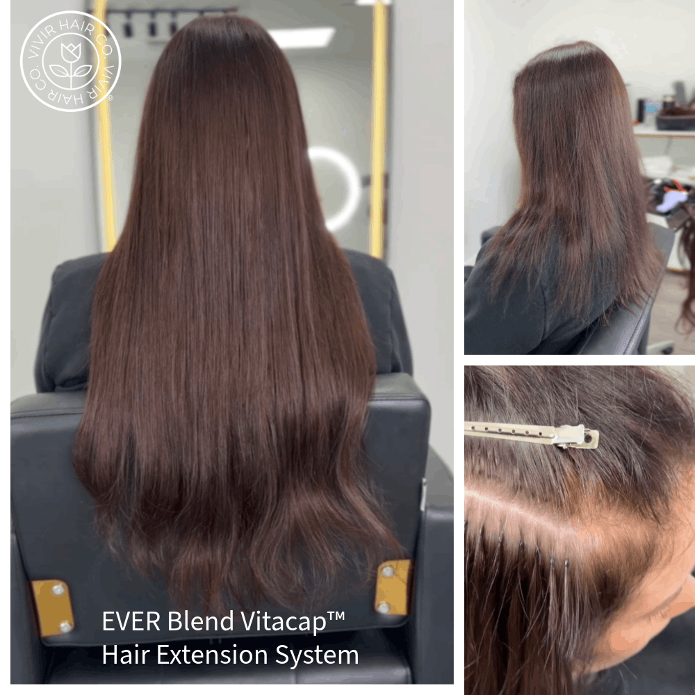 Introducing EVER Blend™️ The revolutionary hair extension system that seamlessly bonds your hair to the extensions without harsh glues or chemicals.Call for a free consultation.